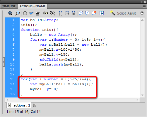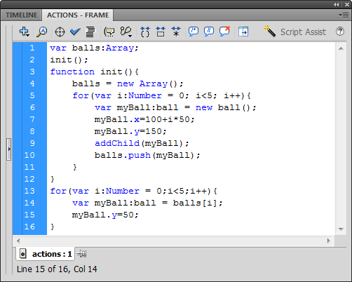 Let's start by opening ball_array.fla