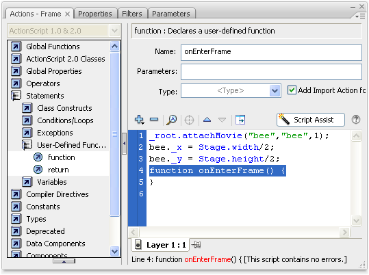 - Type onEnterFrame in the Name box. This is cAse sEnsitive