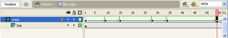 Now edit the Bar copy MovieClip. Change the distance between keyframes, the mask on each keyframe, and most important, the length of the timeline. Each bar animation should have a different timespan. When they loop, people won't be able to detect a pattern.