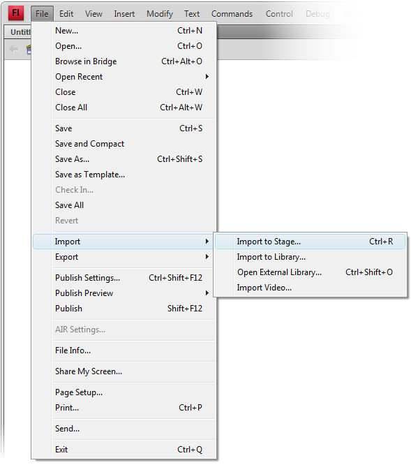 Let's start by getting the picture on the stage. Click File > Import > Import to Stage