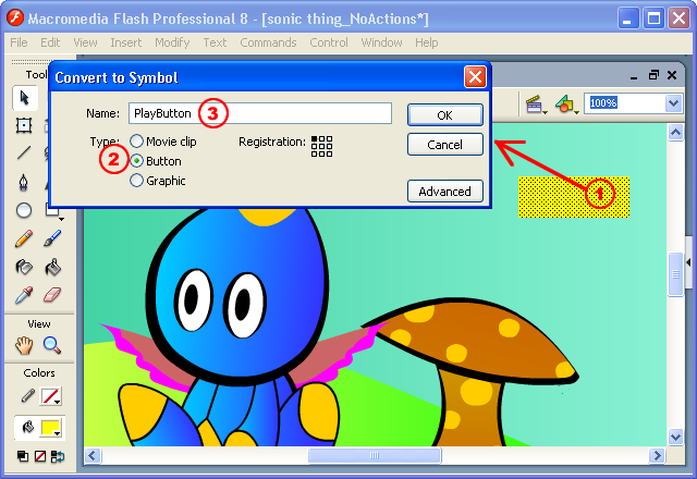- Draw a simple rectangle to function as a button, then Convert To Symbol