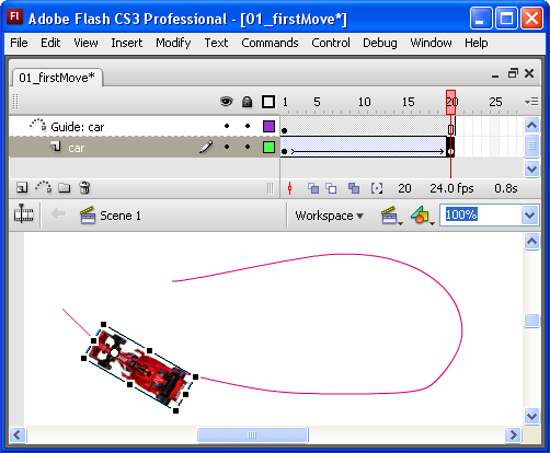 Use the Free Transform Tool to rotate the MovieClip so it points the direction you want at the end of the tween. You can rotate at the start too, if you need: