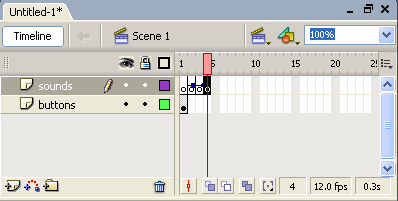 Repeat the process for the other two sound samples. Insert Blank Keyframes, then Drag-and-Drop a new sound. Your timeline should look something like this: