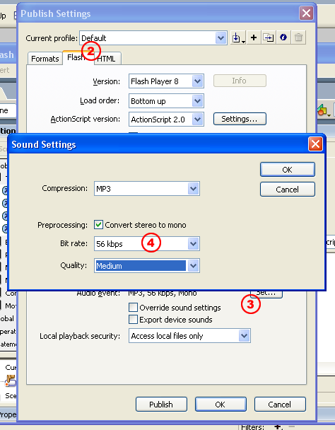 The sound quality of your final Flash project can be greatly effected by the settings you choose. However, the file size of your final project will ALSO be effected. Better quality sound = larger file size = slower download speeds! You need to come up with an acceptable compromise for each individual project.