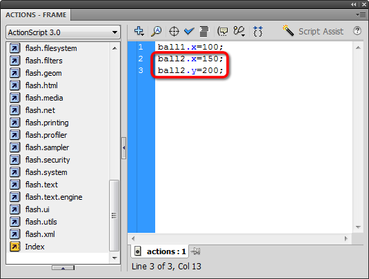 - We started by referencing a MovieClip instance name: ball1