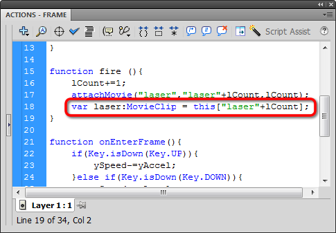 Create a MovieClip label called laser we can target: