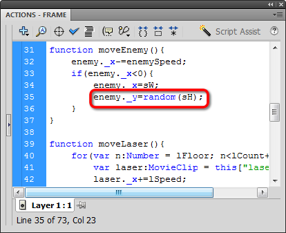 We'll have the enemy screen wrap using that sW (which equals Stage.width) variable we set long ago: