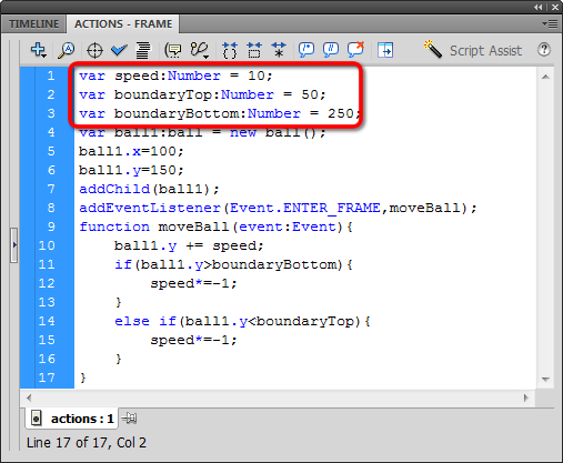We've got a great little project going now. And because we used variables, we can sit back and experiment now. See how easy it is to change the speed and top and bottom boundaries now! It's located right up top: