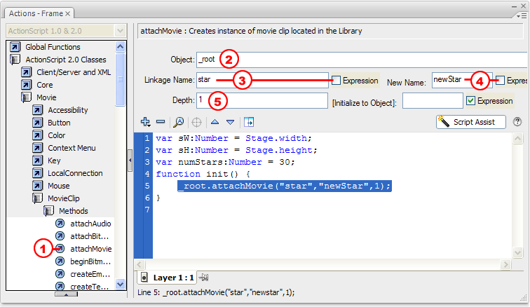 - Click ActionScript 2.0 Classes > Movie > MovieClip > Methods > attachMovie