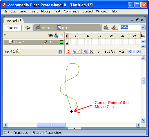 Insert a New Symbol and create a Movie clip named main. Start with a simple line drawing... once again, you will be modifying your artwork later, after you grasp the concept of what the ActionScript does.