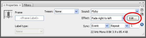 If the ability to Fade In, Out, Left or Right isn't quite enough, you can really customize the sound envelope. Start by clicking Edit in the Properties window: