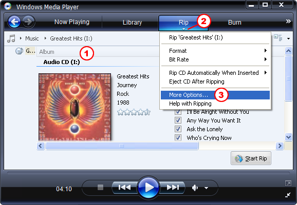 Get your CD in the drive and start Windows Media Player (if it doesn't autostart). The default audio format in Windows Media Play is WMA, which is a fine format, but not compatible with Adobe Flash. Thankfully, the fine folks at Microsoft embedded technology to rip to an MP3 as well. This is quick and easy, so let's jump into it: