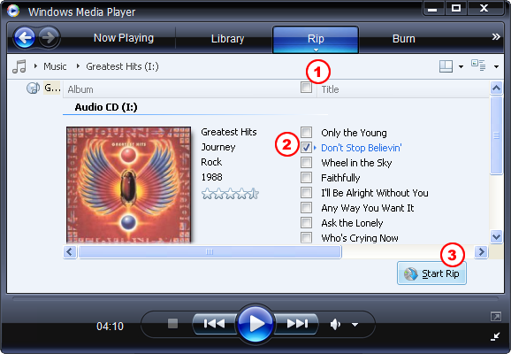 If you want to convert the entire CD to MP3's, click Start Rip. To select just one song: