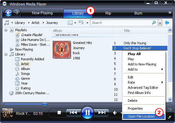 Once the rip is complete, you will have to determine where on the computer the file is actualy stored. Fortunately, Windows Media Player makes this easy too.