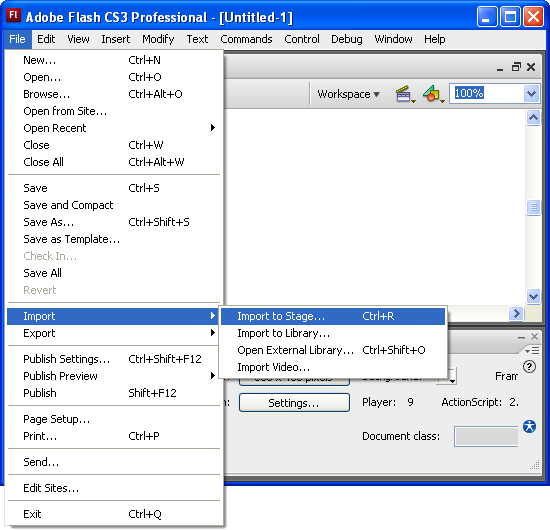 Start a new Flash project and bring in the bitmap image by clicking File and Import