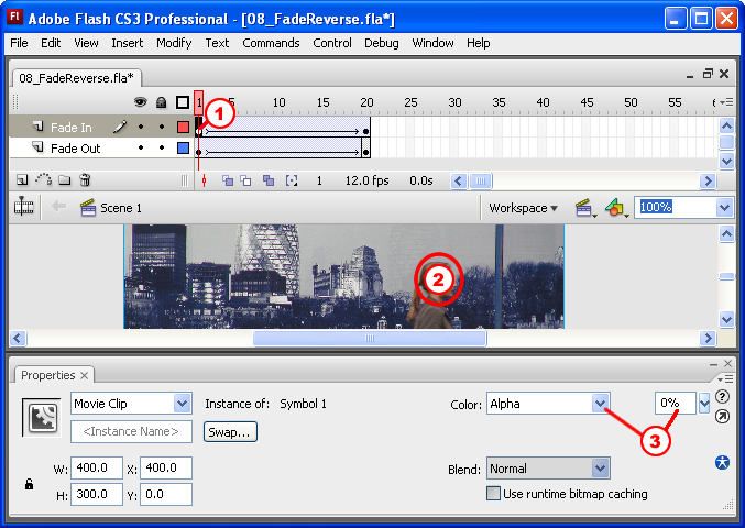 - Insert a KeyFrame on the same frame as the Fade Out layer