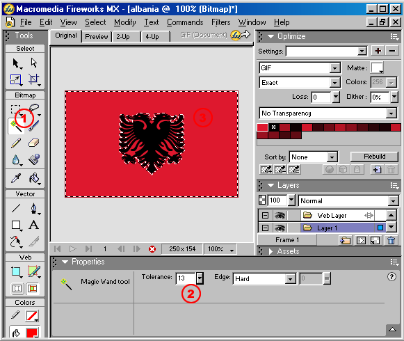 The flag is very cool the way it is, but we want to isolate the black crest from the red background. It may be tempting to grab an eraser tool and spend twenty minutes dragging the mouse around, but don't do it.