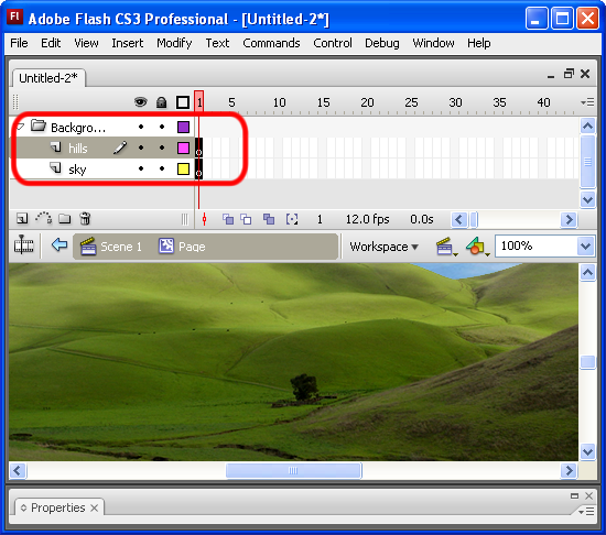 OK, now we can see the beauty of working with a Fireworks PNG bitmap. My image was imported into a MovieClip. When I edit that MovieClip, I see that the Layer Names have transferred directly into my Flash document: