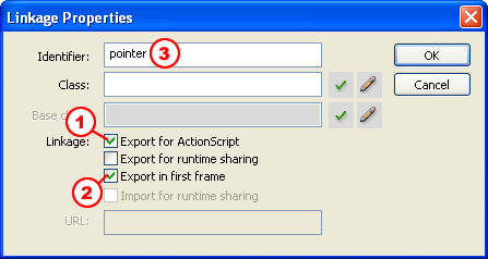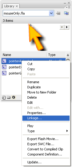 Find the MovieClip in the Library (CTRL+L is your keyboard shortcut to show/hide the Library). Right-Click on the symbol, and choose Linkage: