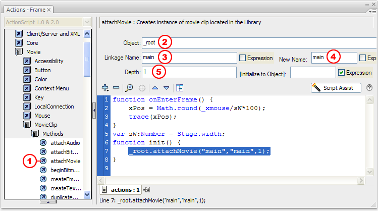 - Click ActionScript 2.0 Classes > Movie > MovieClip > Methods > attachMovie