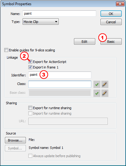 Click Insert > New Symbol and give the new Movie Clip the name paint: