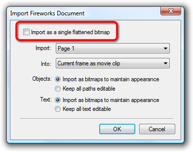 Deselect the Import as a single flattened bitmap check box.