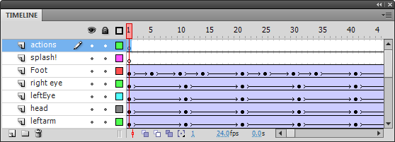 Let's get your movie to STOP on the first frame. We are going to do this by putting some code on a keyFrame. First, create a new layer at the very top and name it actions. It's a good habit to create a unique layer just for actions:
