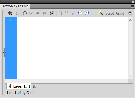 - Make certain the top left corner says Actions-Frame (select Frame One on the timeline if not)