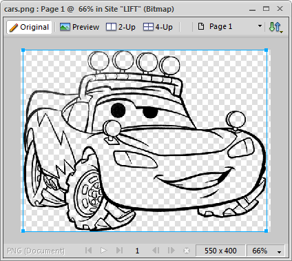 We're going to use Adobe Fireworks to first increase the contrast on this picture, then make the white area transparent. Start by opening the image in Fireworks: