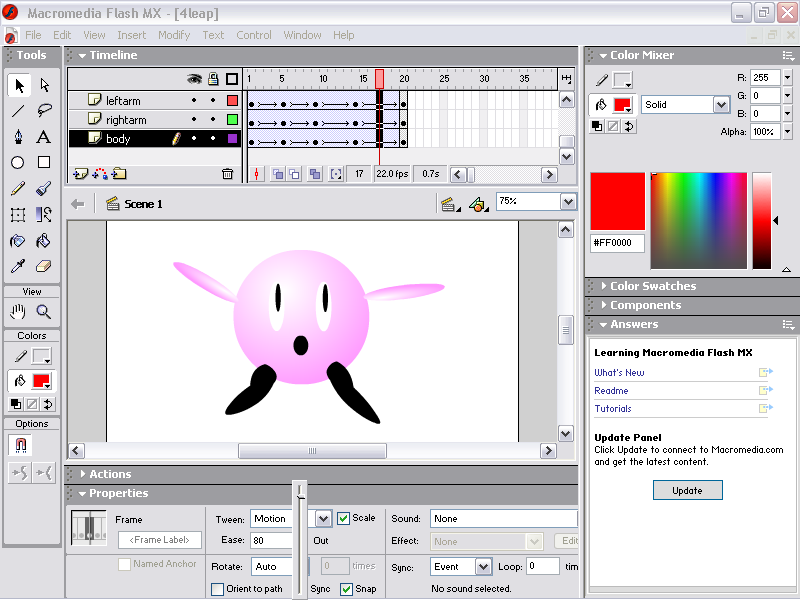 As the character starts to near the top of the leap, adjust the tweens to incorporate