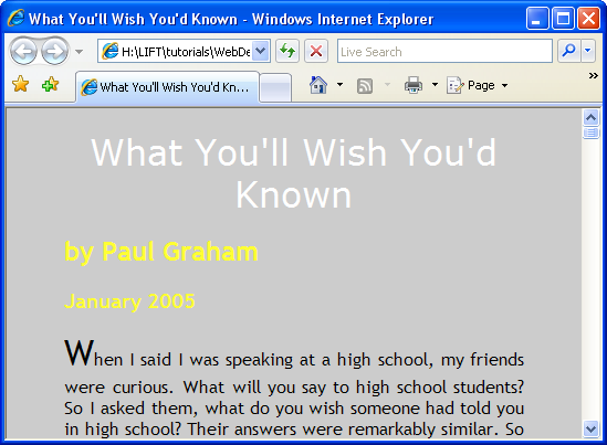 body {background-color: #669900; color: #99FF00; font-size: 12px; font-family: Trebuchet MS, Verdana, Arial, sans-serif; margin-top: 20px; margin-left: 10%; margin-right: 10%;}