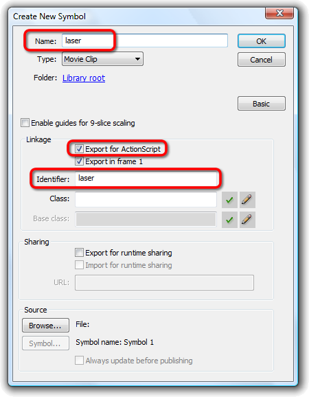 Start by creating the laser MovieClip: