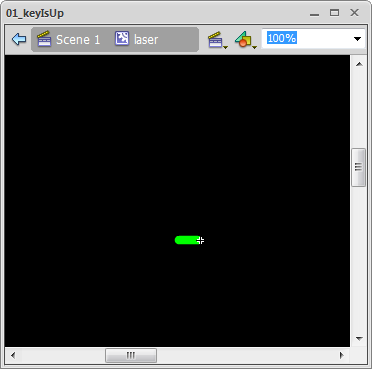 The first thing we'll do is create a "fire" function that attaches a laser MovieClip to the stage. We'll worry about calling that function later.