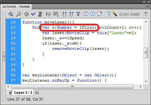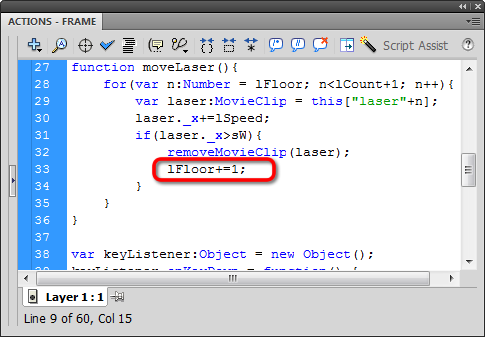 Let's create a "floor", so the for loop starts counting from the lowest existing laser. We'll call that variable lFloor: